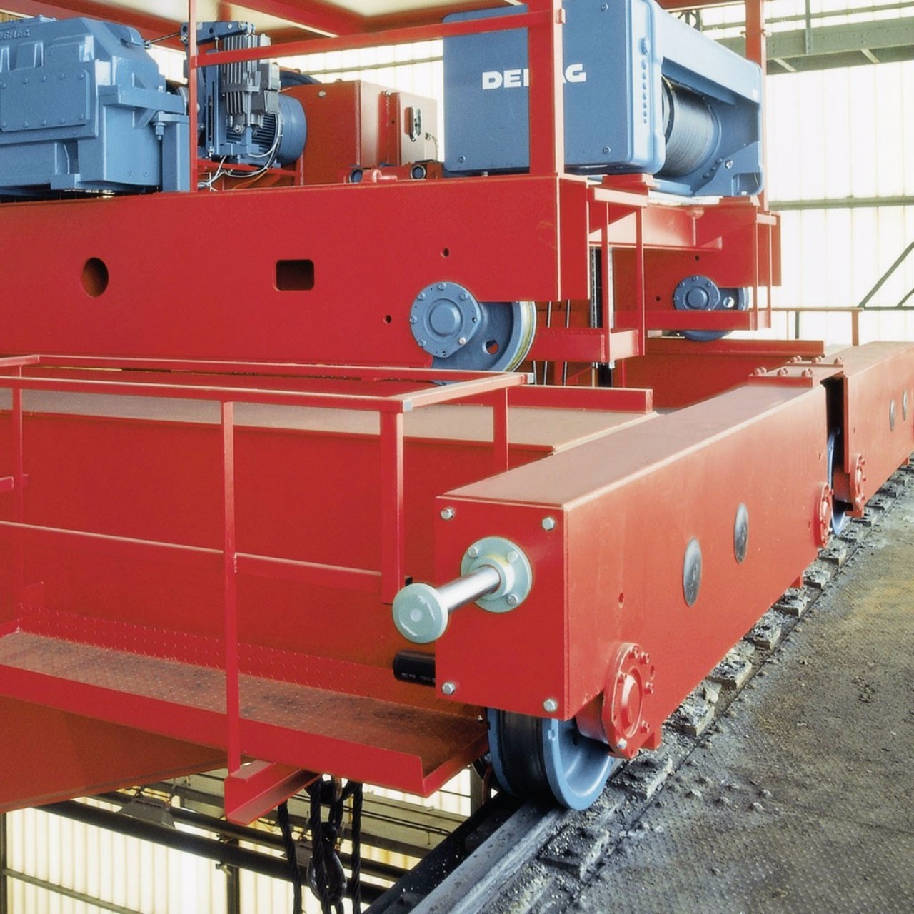 Pojazdové jednotky Demag zaisťujú úlohy spojené s koľajovou prepravou v najvyššom rozsahu zaťaženia. Kompletná pojazdová jednotka sa skladá z nepoháňanej kolesovej sady AE. K poháňaniu sa používajú motory s plochou prevodovkou Demag. Používanie týchto osvedčených sériových konštrukčných dielov ponúka vysokú funkčnú spoľahlivosť a garantuje zameniteľnosť v prípade výmeny kolesa.